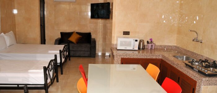 Studio climatisé à 5 minutes à pied de la place djemaa El Fna ,au calme dans résidence de bon standing,vacances à marrakech,Vue sur Palais Badai, avec Balcon,terrasse, Cuisine équipée, ,ensoleillé,les petits Taxis sont à 10 mètres.